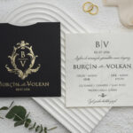 Siyah Zarflı Yaldız Baskılı Kare Davetiye 9236
